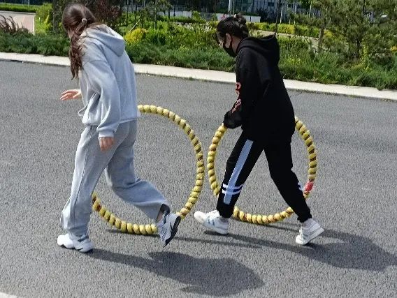 在此任务点,每个参赛队伍选取两名队员转呼啦圈,转满五圈之后,需要携带呼啦圈滚动回到七点,途中呼啦圈不允许离开地面。这是最后一个任务点,每个人都怀着激动的心情,寻找制胜技巧,取得最后的胜利。