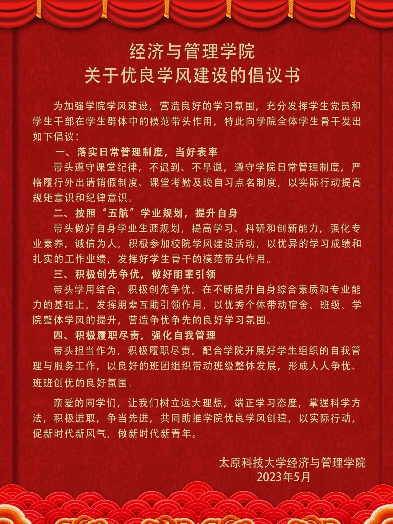 乔彬强调,学院学风建设是学院教育工作的基础性、长期性、持久性工程,是提升育人水平的重要抓手。同学们要聚焦专业学习,不断提升自身综合素质,让优良学风成为更多学生的人生底色。