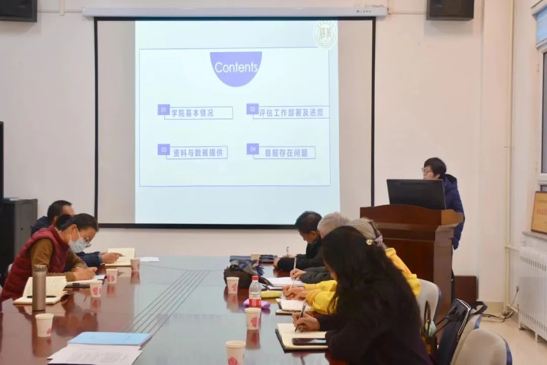 乔彬按照审核评估指标要点,全面总结学院自查自建工作进展情况,围绕立德树人根本任务,从学院基本情况、审核评估工作部署、资料与数据提供、目前存在问题及整改方案等方面,汇报了工作思路与举措成效。