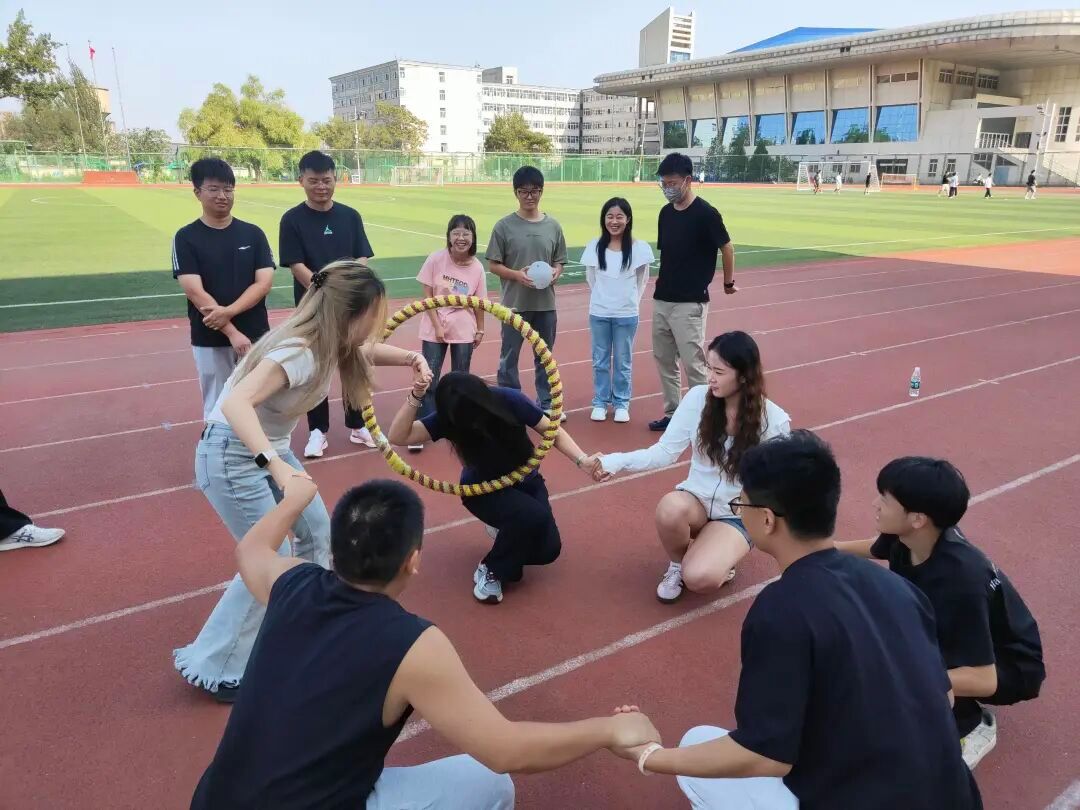 来自五湖四海的2025级研究生满怀憧憬齐聚一堂,开启了属于他们的学术新征程。活动伊始,同学们通过抽签分组、确定队名,迅速完成团队组建。虽然彼此初识,但在轻松愉快的氛围中,陌生感逐渐消融,操场上响彻着加油声与欢呼声。