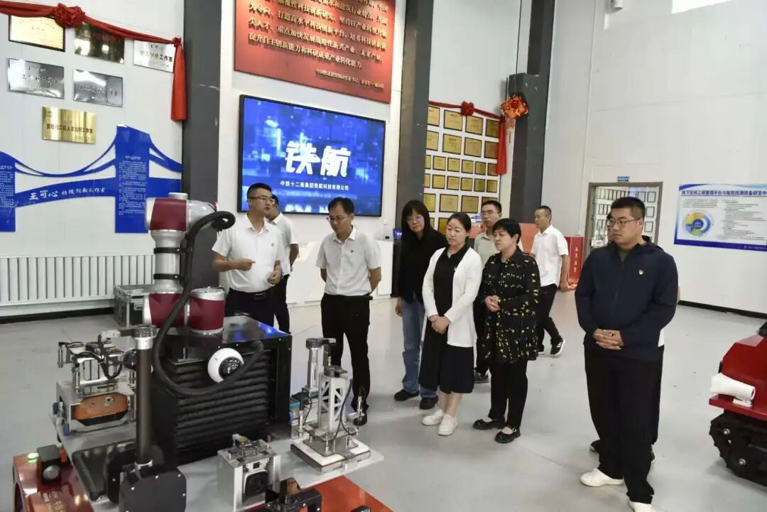 仪式结束后,与会老师、学生们参观了中铁十二局二公司科技分公司的智能产品展示区、生产车间、科技发展历程展区、生产流水线以及数字展示厅等,深入了解企业在科技创新和生产实践方面的成果与经验。