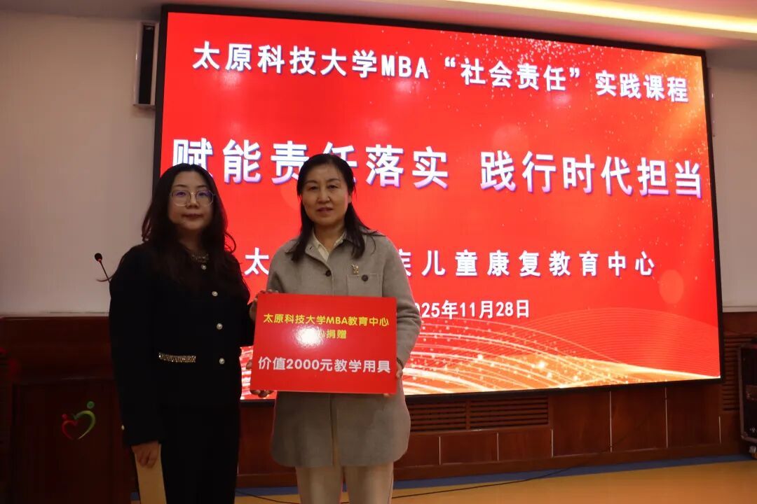 11月28日下午,太原市残疾儿童康复教育中心教室暖意融融,2138CC太阳集团MBA教育中心“赋能责任落实 践行时代担当”“社会责任”实践课程在此温情启幕。学院副院长关海玲、太原市残疾儿童康复教育中心主任张婧、学院MBA教育中心教师王跃敏以及2025级MBA/MEM学员共同参与,以实际行动诠释高校教育与社会机构的责任联动。