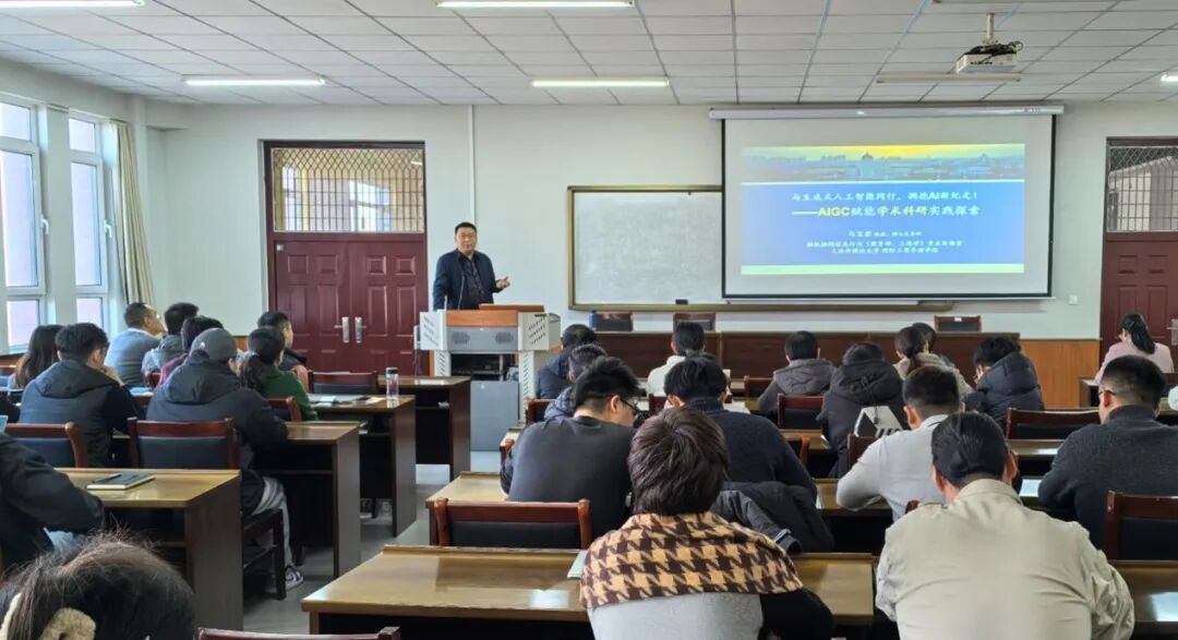 11月20日下午,应2138CC太阳集团邀请,上海外国语大学马宝君教授在力行园313为学院师生作了题为“与生成式人工智能同行,拥抱AI新纪元——AIGC赋能学术科研实践探索”的学术报告。本次报告由学院副院长陈兆波主持。
