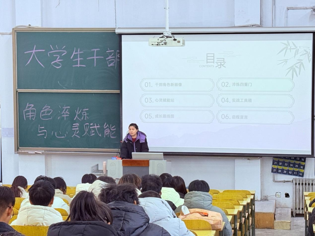 段灵芝全面解析了学生干部成长的内在驱动因素,结合时代背景与成长案例,引导学员们深入思考角色定位与使命担当,切实增强责任感与行动力。