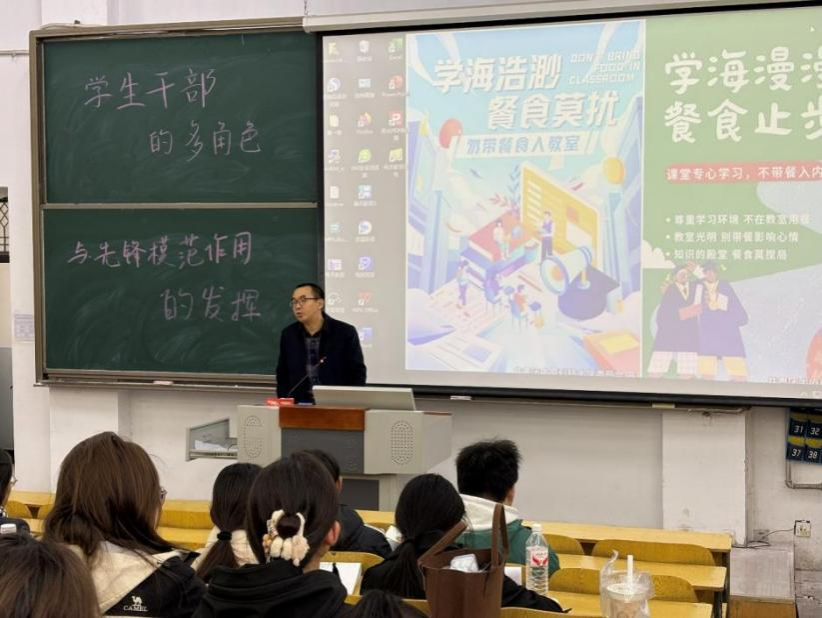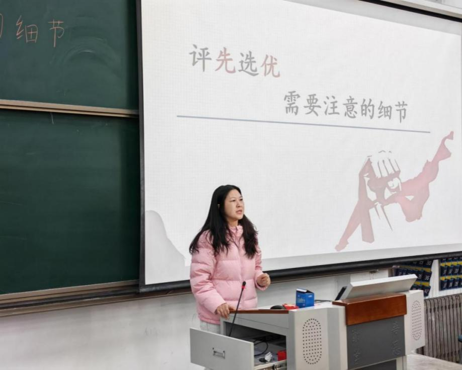 王璐瑶围绕评先选优工作的程序规范与注意事项展开细致讲解,明确评选标准、流程及材料提交要求,强调公平、公正、公开原则贯穿始终。学生干部在组织过程中要严守纪律,确保评选过程透明可信,切实发挥先进典型的示范引领作用。王璐瑶指出,评先选优不仅是荣誉认定,更是成长的激励与价值导向,引导学生树立正确荣誉观。要让优秀学生先进事迹可感可学,营造比学赶超、积极向上的氛围。