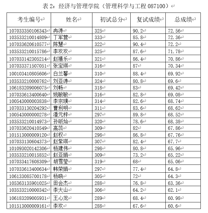 拟录取名单请随后登录学校研究生学院网站查询。正式录取名单待山西省招生考试管理中心和教育部审核通过后确定,如在审核过程中发现有不符合报考、调剂、复试资格的考生,学校将取消其拟录取资格。